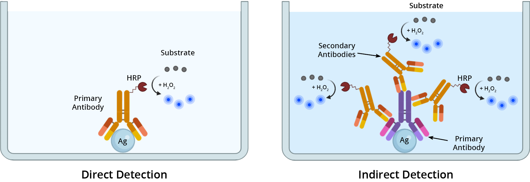 Determining which detection method to use depends upon the expression level of the target antigen. For detecting highly-expressed antigens, direct detection is a suitable method. When sensitivity is paramount, such as detecting low-abundance targets or poorly-expressed antigens, use an indirect detection method to elevate the signal.