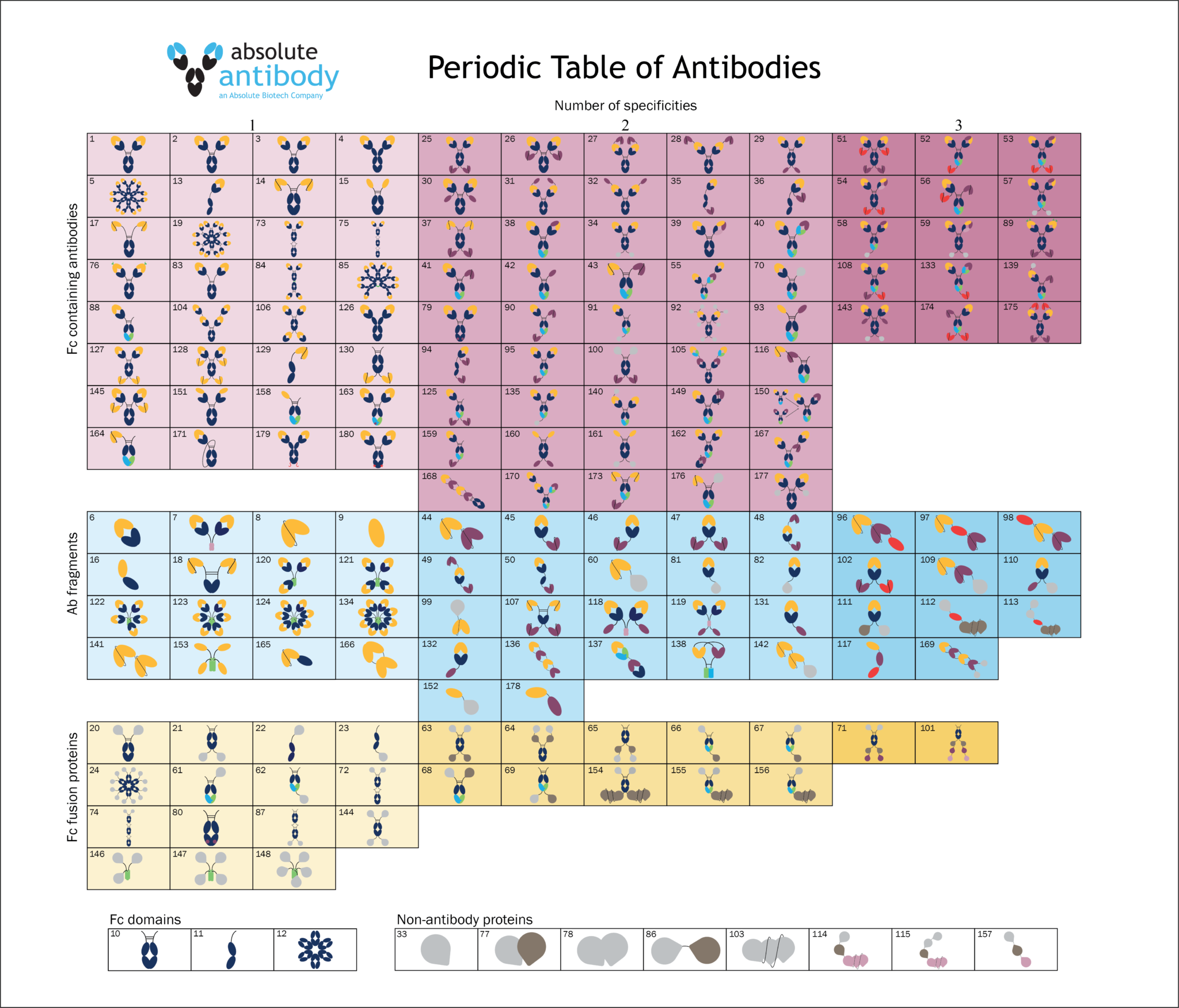 Thinking about murine bispecifics? Check out our murine bispecific antibodies and contact us to discuss your ideas and projects! We are dedicated to making your antibody possibilities a reality, and our Periodic Table of Antibodies (a collection of more than 180 antibody formats we have created) shows just how many possibilities exist for your experimental goals!