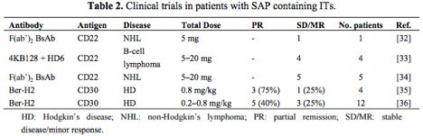 The table below[2] highlights antibody-saporin conjugates approved by the FDA for Phase I/II clinical trials in humans. The therapeutics listed below were administered intravenously and imply what the FDA accepted as non-toxic levels of saporin-based conjugates in these studies.