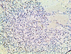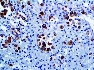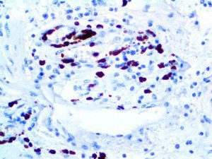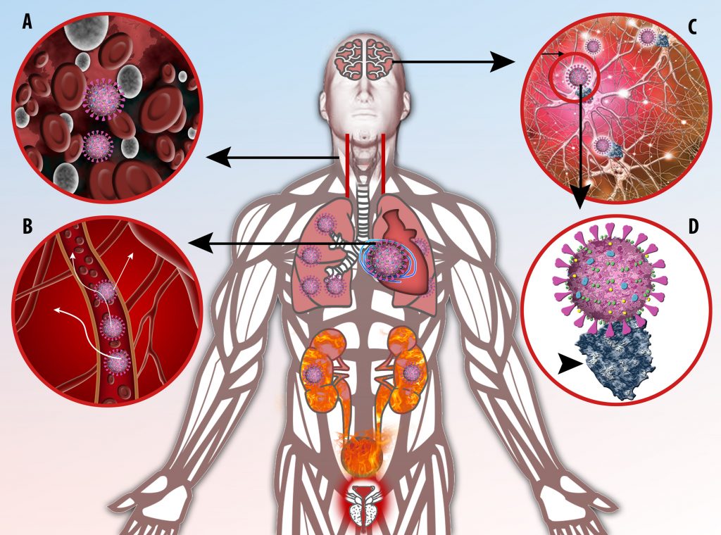 This activation induces inflammatory monocytes to highly express IL-6, starting a localized and then systemic cascade effect that results in hyperproduction of IL-6, which accelerates the inflammatory process. Because IL-6 also increases vascular permeability, excessive levels cause blood vessels to become very leaky. This, along with clotting factors released from vascular endothelial cells, stimulates the coagulation cascade, resulting in microthrombosis (tiny clots), which leads to ischemia and tissue death of the kidney, intestines, heart, liver, brain and extremities.