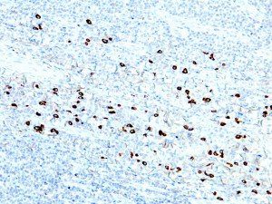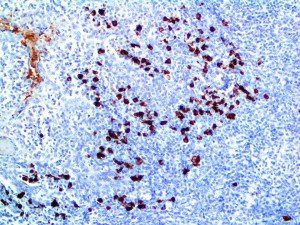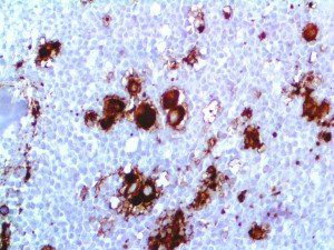 Clinical and laboratory manifestations of HLH include fever, enlarged liver and/or spleen, neurologic dysfunction, coagulopathy, liver dysfunction, cytopenias (i.e., low levels of erythrocytes, leukocytes, and/or platelets), hypertriglyceridemia, hyperferritinemia, hemophagocytosis, and eventually diminished NK cell activity as the immune system becomes progressively paralyzed. HLH can be familial (primary HLH) or secondary to another disease process (sHLH), such as rheumatic disease, in which it is referred to as macrophage activation syndrome (MAS, characterized by elevated ferritin).