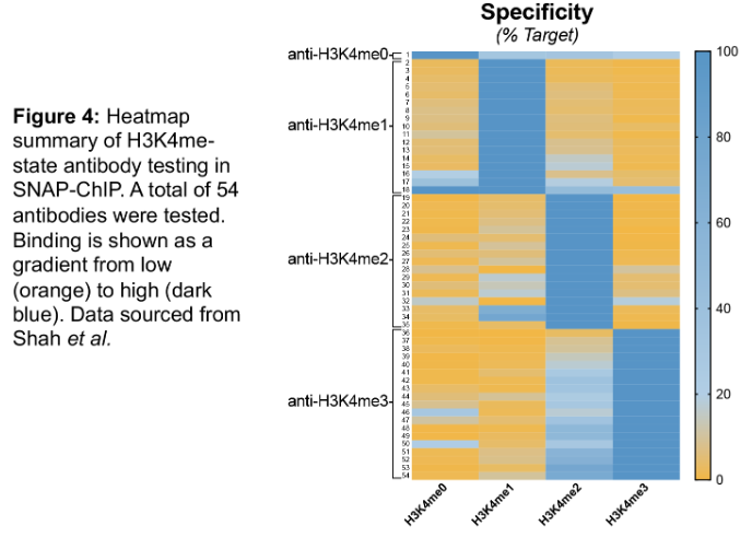 Highly specific antibodies are a crucial component of epigenetics research, and form the foundation of multiple chromatin profiling assays. For instance, in chromatin immunoprecipitation experiments (i.e. ChIP-seq or ChIP-qPCR), antibodies are used to map the localization of histone post-translational modifications (PTMs) and other chromatin associated proteins. The specificity of these antibodies is thus paramount to the biological relevance of resulting ChIP datasets.