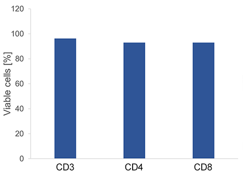 T cells (CD3+, CD4+ and CD8+) were isolated using Fab-Streps and Strep-Tactin® Magnetic Microbeads according to the Fab-TACS® approach for magnetic cell isolation. Purity and viabiliy were evaluated.