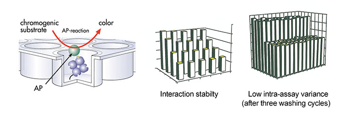 Strep-tag®II fusion proteins were immobilized on Strep-Tactin® microplates. Subsequently, the activity or abundance of the Strep-tag®II fusion proteins was determined by enzymatic reaction.