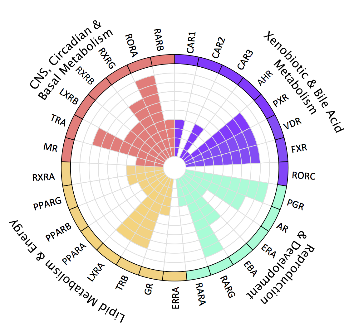 Nuclear receptors act as transcription factors that mediate the effects of hormones, drugs, and other xenobiotics by regulating the expression of specific genes involved in many cellular functions including development, reproduction, and metabolism. The target gene and protein expression patterns of nuclear receptors and their physiological effects create a network that can be monitored by multimodal approaches, such as systems biology. Therefore, defining the biological niche of each nuclear receptor and understanding their overlapping pathways and functions can provide value to discovery researchers when evaluating a potential compound’s promise and liabilities.