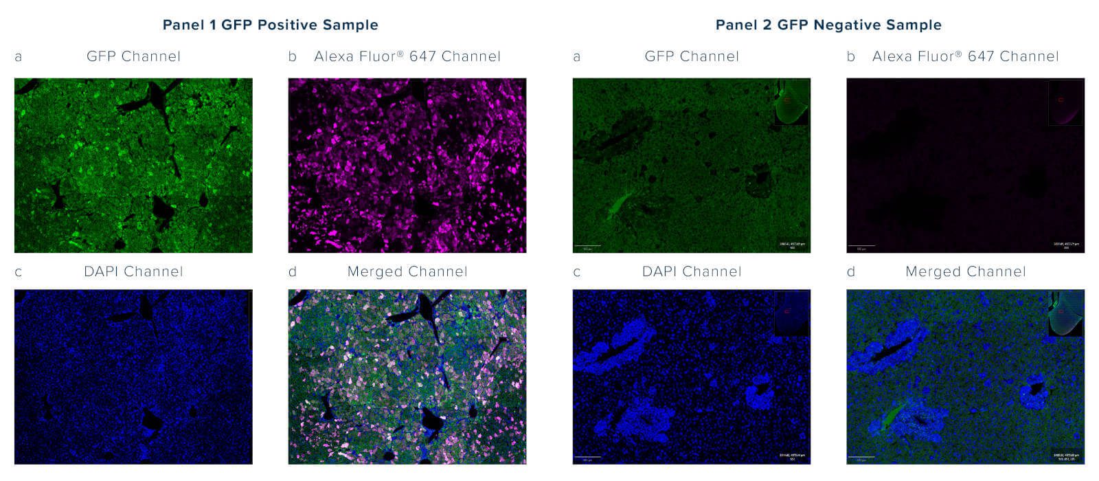 - Switch the channel to circumvent background/ endogenous GFP signal and autofluorescence.