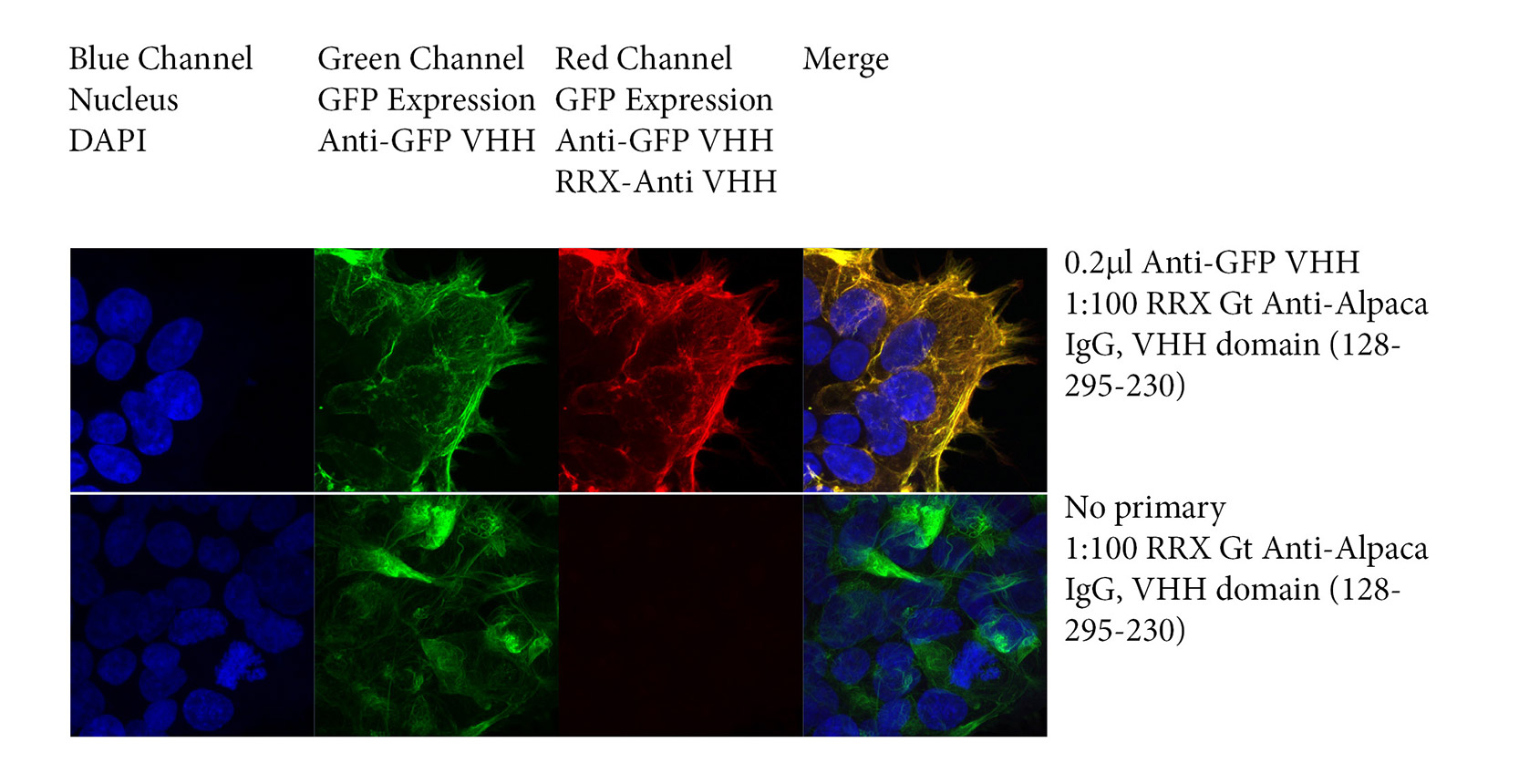 Figure 2: Imaging Nanobodies with Monovalent Fab fragment Goat Anti-Alpaca, VHH domain antibodies