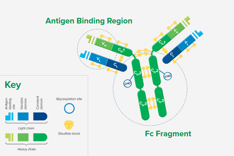 Whole IgG antibodies are isolated as intact molecules from antisera by affinity chromatography. They have an Fc portion and two antigen binding Fab portions joined together by disulfide bonds (Figure 1), and therefore are divalent. The average molecular weight is reported to be about 160 kD. The whole IgG form of antibodies is suitable for the majority of immunodetection procedures and is the most cost effective.