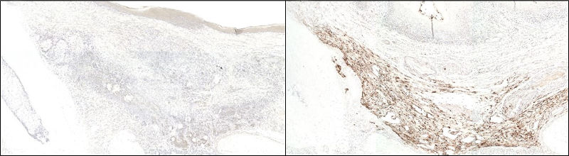 (Right) GFP-producing cells were visualized by brown staining in the positive control; signal was visualized using the chromogenic substrate 3,3′ diaminobenzidine (DAB). Nuclei were counter-stained with hematoxylin.