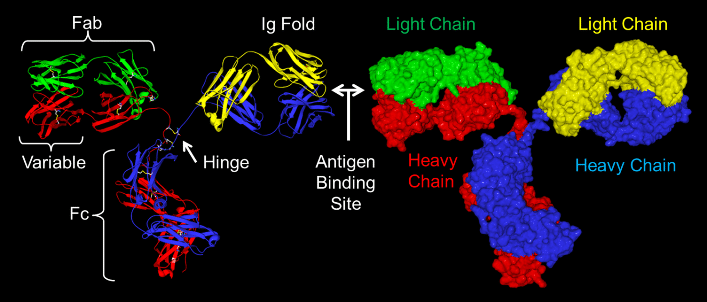 - Whole IgG molecules and F(ab’)2 fragments of IgG have two antigen binding sites.