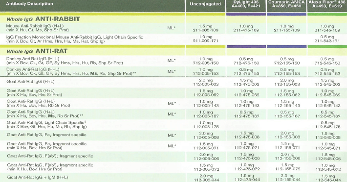 - Anti-Mouse IgG (min X Rat and other species) and Anti-Rat IgG (min X Mouse IgG and other species) have diminished epitope recognition.