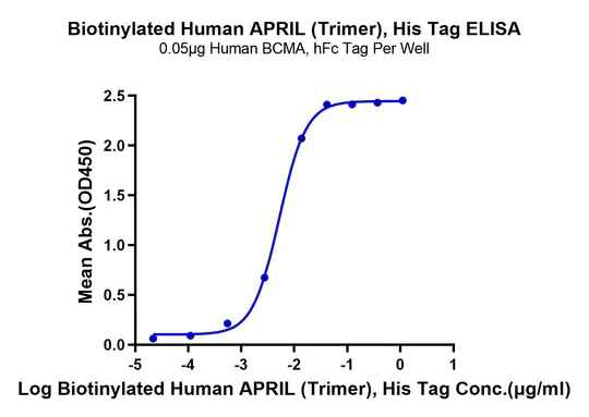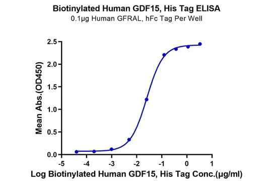 Figure 4. Verified by ELISA, site-specific biotin-modified Human APRIL (Trimer) (left) and GDF15 (right) both exhibit good binding activity with their respective ligands.