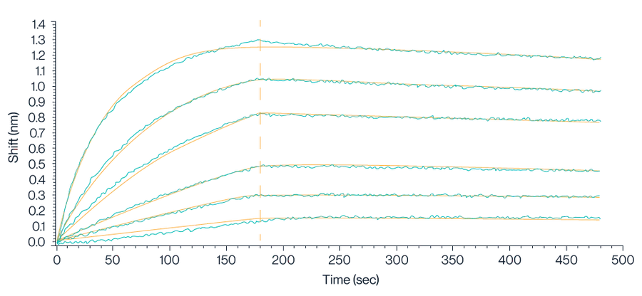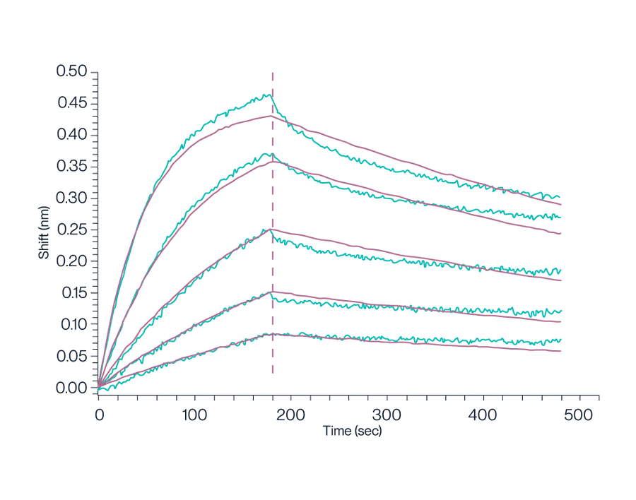 Figure 4. Biolayer Interferometry (BLI) data demonstrates the binding kinetics of Claudin 18.2 VLPs to streptavidin-labeled probes. The analysis reveals a high binding affinity with a dissociation constant (KD) of approximately 5.73E-10 M, indicating strong and stable interaction.
