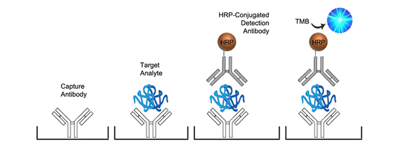 In Sandwich ELISAs for example, a capture and detection antibody are needed. These antibodies can be either monoclonal or polyclonal but the pros and cons of each type should be considered. Monoclonal antibodies are highly specific for a single unique epitope on their target antigen. For this reason they cannot be used as both the capture and detection antibody in the same assay as they would compete for the same binding site. This highly selective binding characteristic can make monoclonal antibodies highly specific, but potentially at the cost of sensitivity as fewer binding sites are availabl on the target analyte. Monoclonals are also highly reproducible, making them ideal for developing assays intended for long term production. In contrast, each polyclonal antibody is a heterogeneous collection of antibodies, targeting multiple binding sites on the target analyte, from stable distinct peptide regions to tertiary structural epitopes that can change with assay conditions. For this reason, polyclonal antibodies have the potential to be less specific than monoclonals, but the fact that they target multiple epitopes make them more flexible in their use, and less sensitive to changing assay conditions.