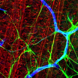 Mouse GFAP- Dylight 405 (green) NF (red) Collagen IV (grey) Vimentin.