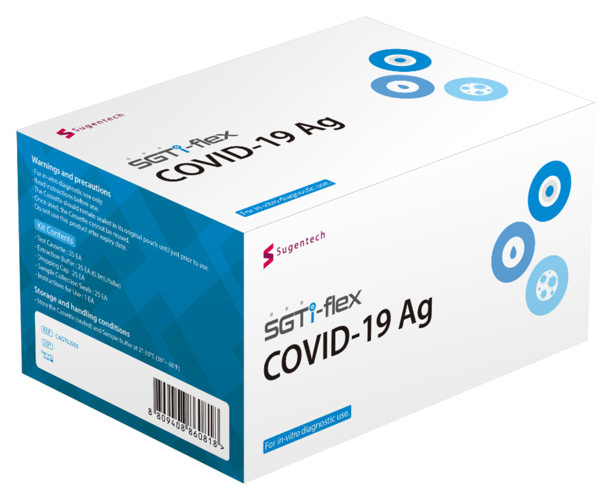Sugentech’s SGTi-flex COVID-19 Ag test is a one-step, rapid immunochromatographic assay for the qualitative detection of specific antigens to SARS- CoV-2 present in human nasopharynx.