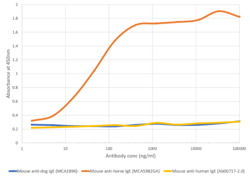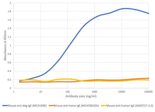 To cater to researchers investigating allergies, we offer a range of antibodies against common allergens. Many of these antibodies have been shown to compete with naturally occurring IgE – the principal antibody isotype mediating allergies. We offer these antibodies as human IgE (along with antibodies against IgE itself) for use as calibrators and positive controls.