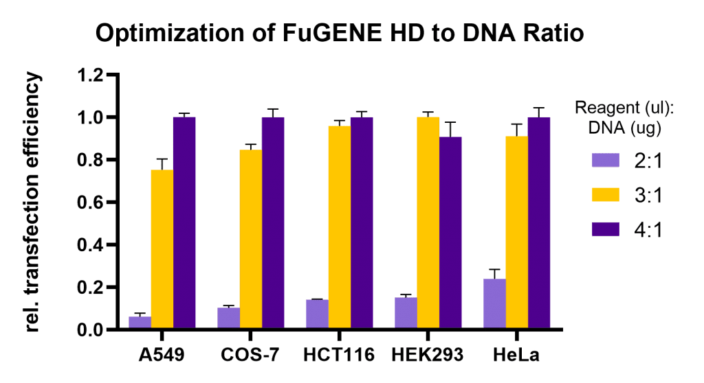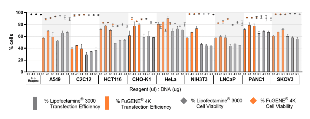 FuGENE® knows how important the high efficiency and gentle DNA transfection of your cells is to your research & production. For 25 years we have led the way with our broad-spectrum DNA transfection reagents. Whether it’s for life science research, the production of antibodies, proteins, viruses, or for groundbreaking therapeutic needs, FuGENE® has you covered with our innovative transfection reagents.