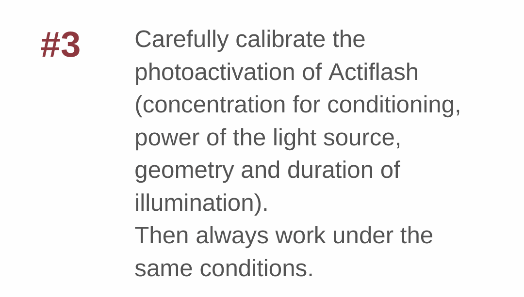 Increase your outputs: don’t need a large surface? Use the Quartet & Nonet designs to multiply your experimental conditions on a single FakirSlide coverslip and create structure-free control areas.