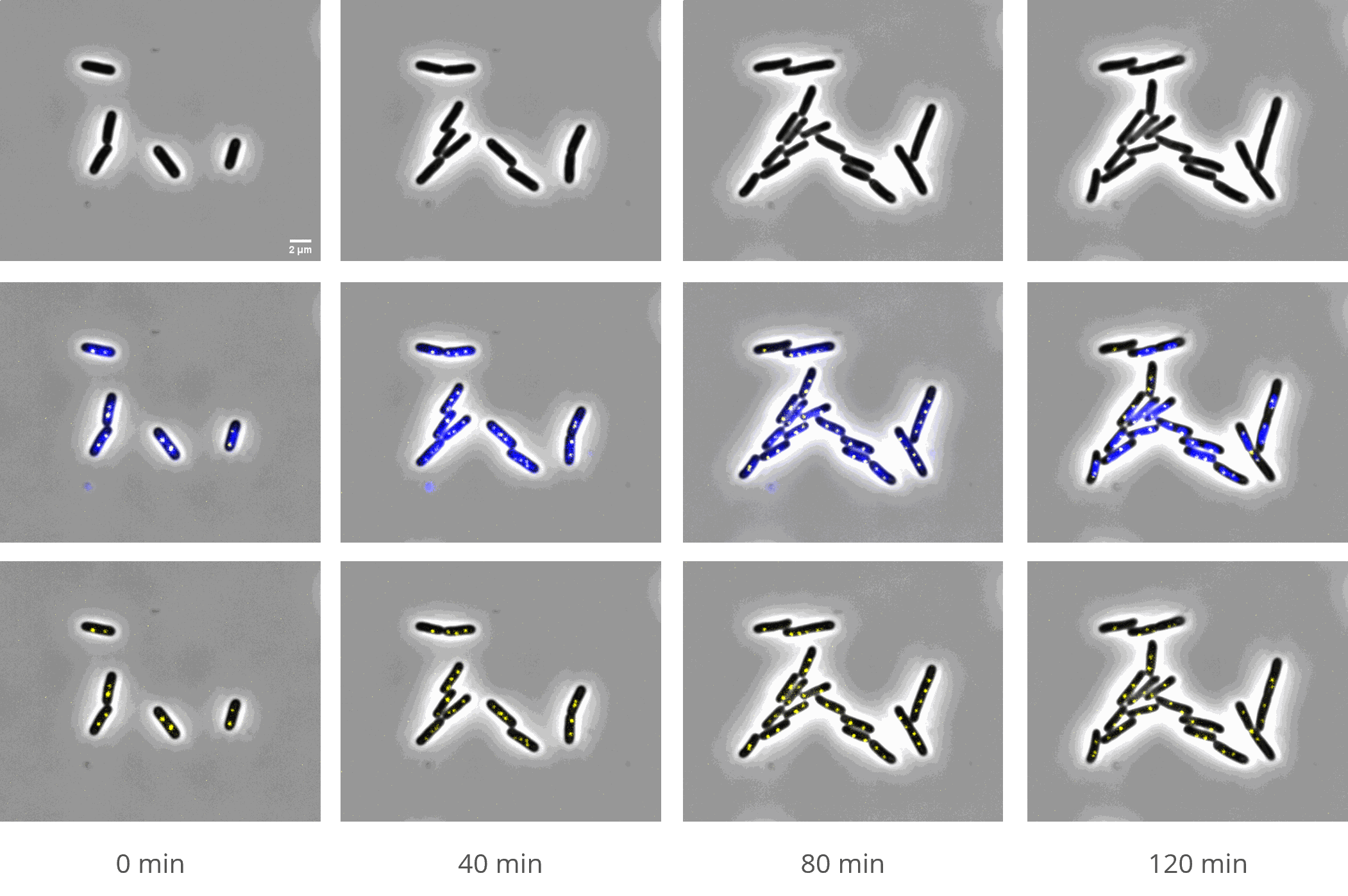 > Behavioural changes: growth, elongation, cell division, fitness, colony/biofilm formation, etc