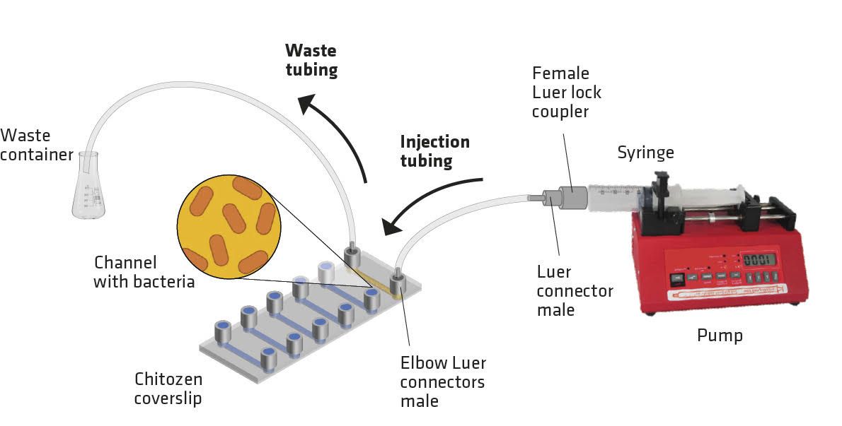 Chitozen is a chitosan-coated coverslip immobilizing bacteria for microscopy without inducing bacteriostatic effects. It is compatible with 6-channel sticky slides for flow experiments. It is very helpful if you want to: