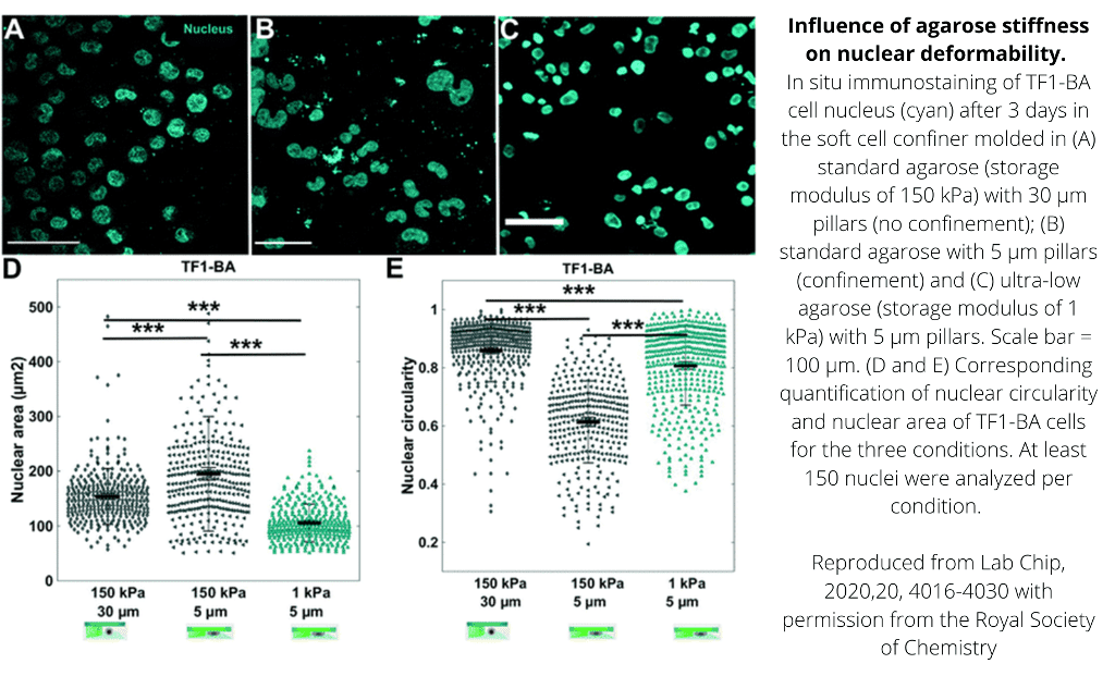 Using a glass-based substrate also offers more rigid structures (Young’s modulus ~64 GPa), providing increased control over cellular membrane bending and improved overall solidity.