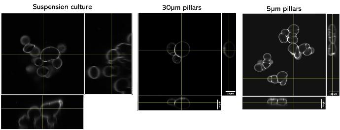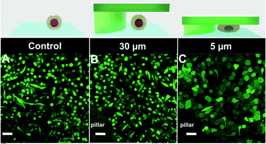 Check out this publication showing how the round pillar size differentially influences the distribution of the surface receptor TfR as well as the recruitment of endocytic F-BAR protein FCHo2.