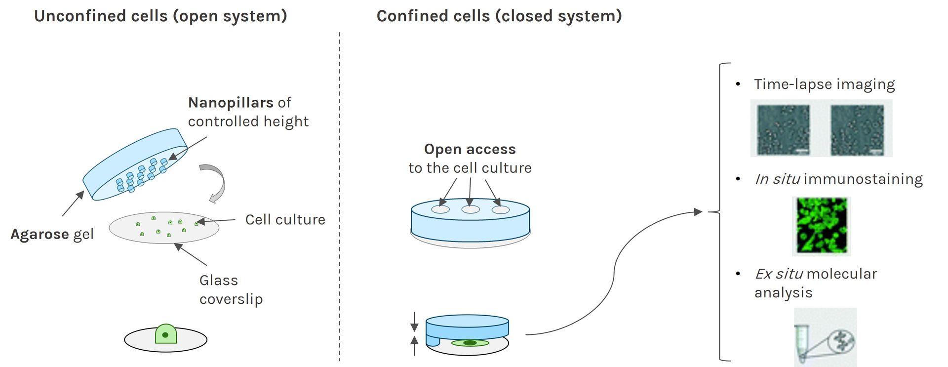 Alternatively, given the coverslip design, it is possible to include a flat control surface as a non-structured control area in parallel to your nanostructured area. This can be an interesting option to assess the impact of a single nanostructure pattern.
