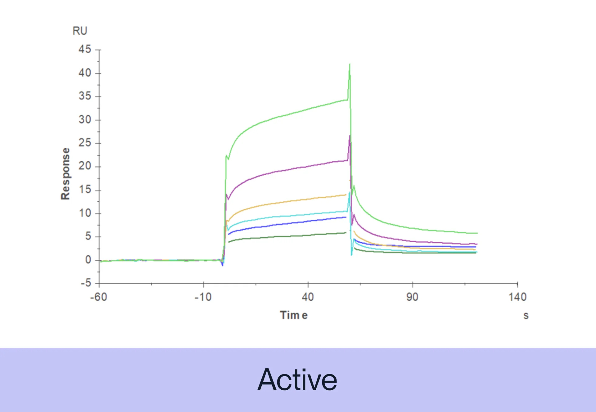 ACTIVITY The potency of our recombinant proteins is analyzed by measuring its in vitro activity, such as its ability to bind to its target molecule via ELISA or SPR assay.