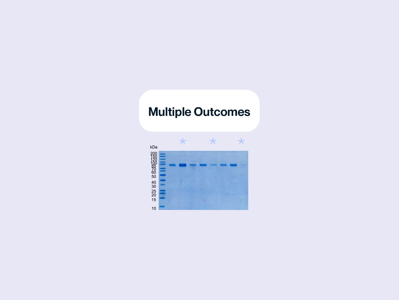 We test all of our proteins in 8-16 various expression conditions to determine the optimal expression conditions for yield, purity, and activity.