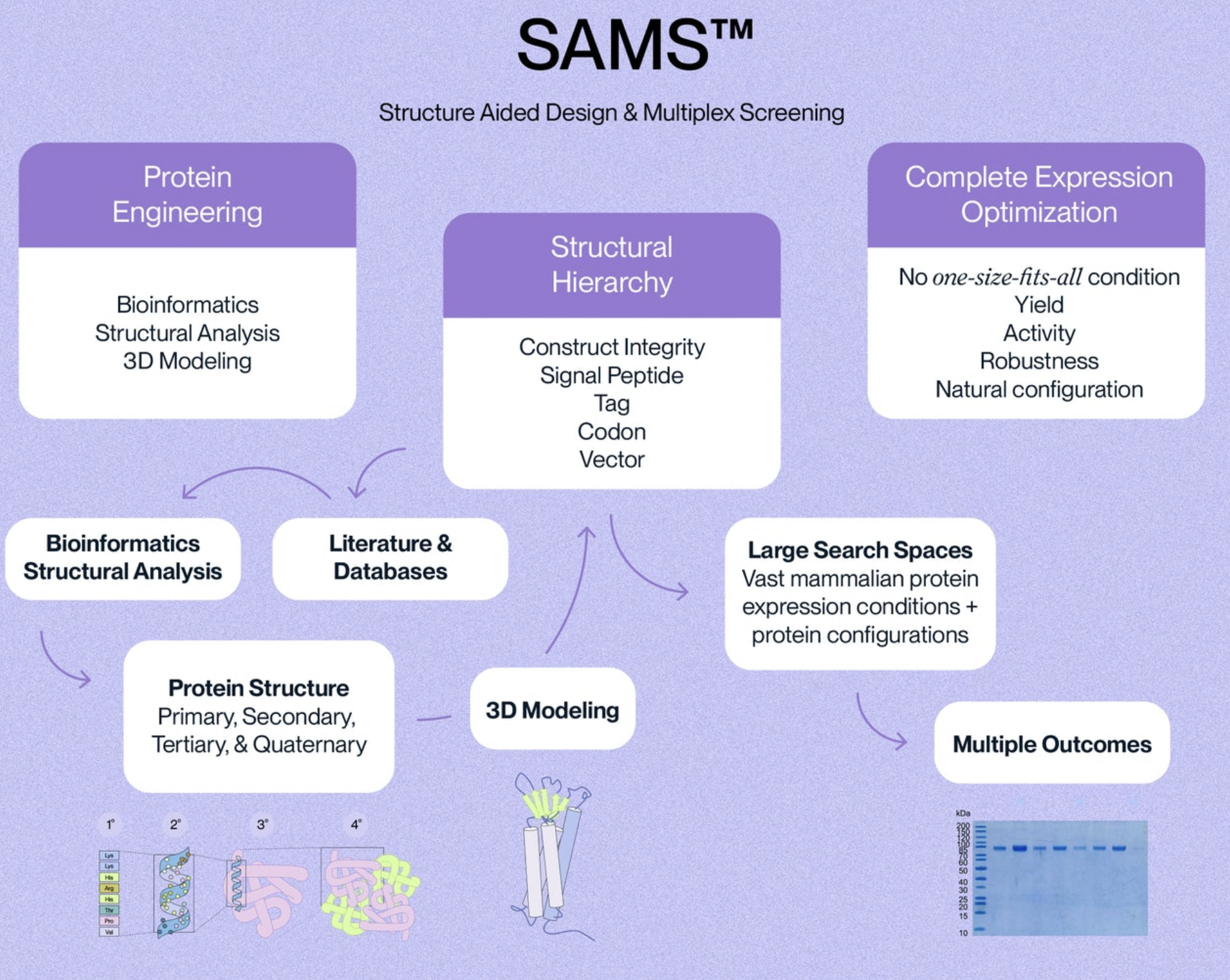 SAMS (Structure Aided Design and Multiplex Screening) is our high-throughput protein expression and purification screening system.