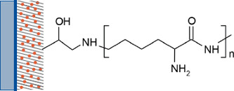 Epoxides are cyclic ethers with a highly strained three member ring. Epoxy rings can be easily reacted with nucleophiles e.g. amines, hydrazines, thiols, hydroxides and carboxyl groups. Compared to NHS-esters or 1,4-Phenylene isothiocyanates (PDITC) the epoxy surface is more stable and has a longer shelf-life. Epoxy-surfaces are stable up temperatures of 40°C and are also more stable against humidity compared to NHS and PDITC-surfaces.