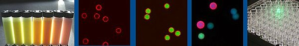 A wide range of combinations from morphology, source material (substrate) and functional groups is possible. No matter if inorganic polymers like glass, natural polymers like cellulose, or artificial polymers like polypropylene, if planar or porous – via spacer nearly any functionality can be covalently bound to the substrates, without influencing their physical characteristics (e.g. their autofluorescence and mechanical stability).