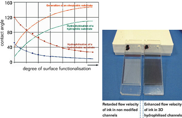 Particularly in the field of life science research, diagnostics, analytics or sensor technology as well as in medical technology biofouling can cause a significant loss of performance: cells or biomolecules interact unspecifically with the vessel surface which can lead to a higher measurement inaccuracy or a high background signal especially when working with small sample volumes. Vascular implants clog (thromboses) or implants risk being limited in their function by infections or inflammations and might even have to be removed.
