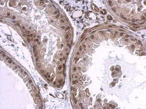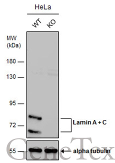 | Immunogen: | Recombinant protein encompassing a sequence within the center region of human Lamin A + C. The exact sequence is proprietary. |