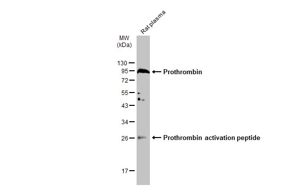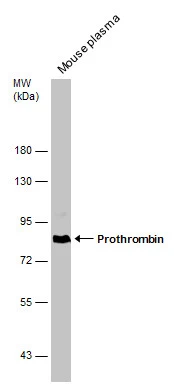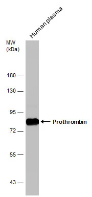 | Immunogen: | Recombinant protein encompassing a sequence within the N-terminus region of human Prothrombin. The exact sequence is proprietary. |