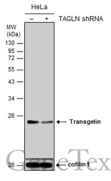 | Immunogen: | Recombinant protein encompassing a sequence within the center region of human Transgelin. The exact sequence is proprietary. |