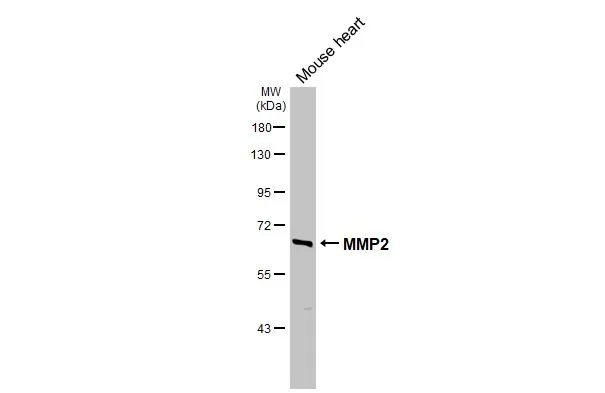 | Immunogen: | Recombinant protein encompassing a sequence within the center region of human MMP2. The exact sequence is proprietary. |