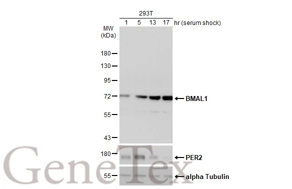 | Immunogen: | Recombinant protein encompassing a sequence within the center region of human BMAL1. The exact sequence is proprietary. |