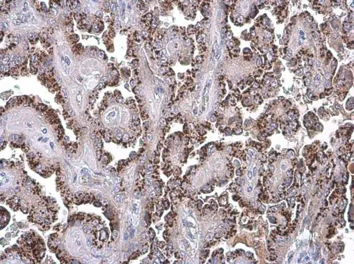 Golgi membrane protein 1, also known as GP73, GOLM1, and GOLPH2, is a type II Golgi membrane glycoprotein with a predicted molecular weight of 45 kDa. GOLPH2 is often overexpressed in the hepatocytes of patients with hepatitis and hepatocellular carcinoma (HCC). Reports indicate that GOLPH2 is a promising serum marker for the diagnosis of HCC.