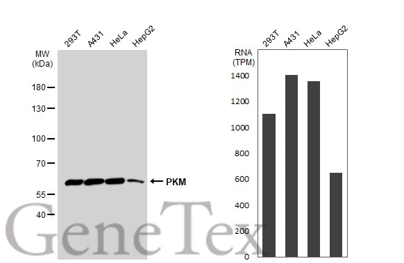 | Immunogen: | Recombinant protein encompassing a sequence within the center region of human PKM. The exact sequence is proprietary. |