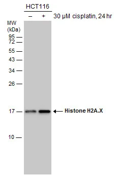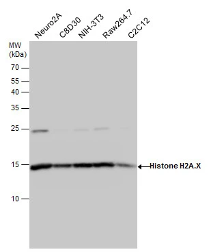 | Immunogen: | Carrier-protein conjugated synthetic peptide encompassing a sequence within the C-terminus region of human Histone H2A.X. The exact sequence is proprietary. |