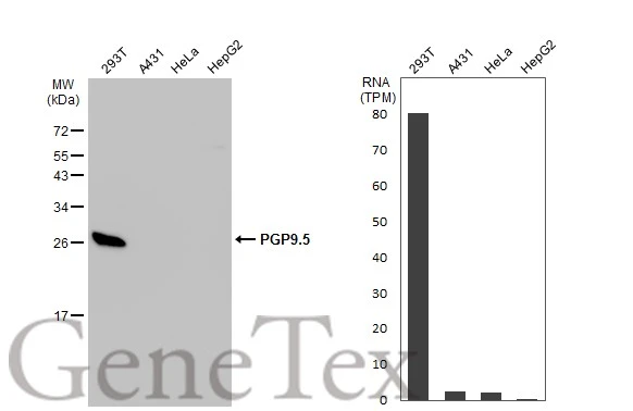 | Immunogen: | Carrier-protein conjugated synthetic peptide encompassing a sequence within the C-terminus region of human PGP9.5. The exact sequence is proprietary. |