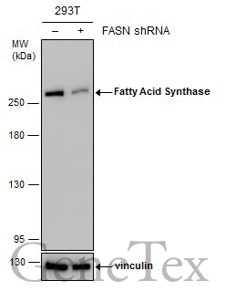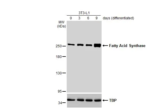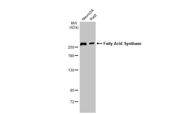 | Immunogen: | Recombinant protein encompassing a sequence within the N-terminus region of human Fatty Acid Synthase. The exact sequence is proprietary. |