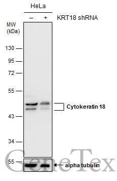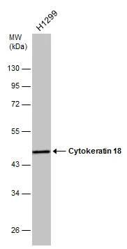 | Immunogen: | Recombinant protein encompassing a sequence within the center region of human Cytokeratin 18. The exact sequence is proprietary. |