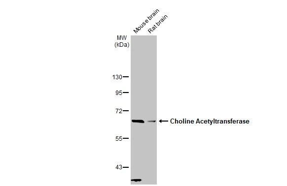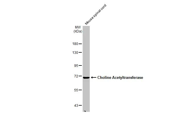 | Immunogen: | Recombinant protein encompassing a sequence within the N-terminus region of human Choline Acetyltransferase. The exact sequence is proprietary. |