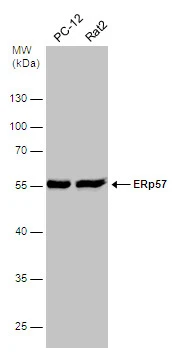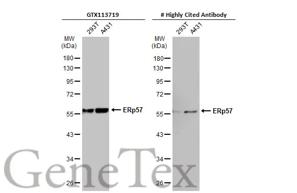 | Immunogen: | Recombinant protein encompassing a sequence within the center region of human ERp57. The exact sequence is proprietary. |