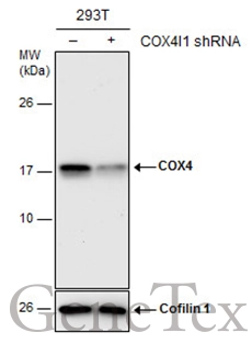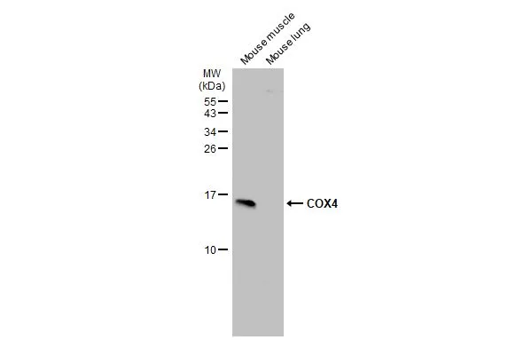 | Immunogen: | Recombinant protein encompassing a sequence within the center region of human COX4. The exact sequence is proprietary. |