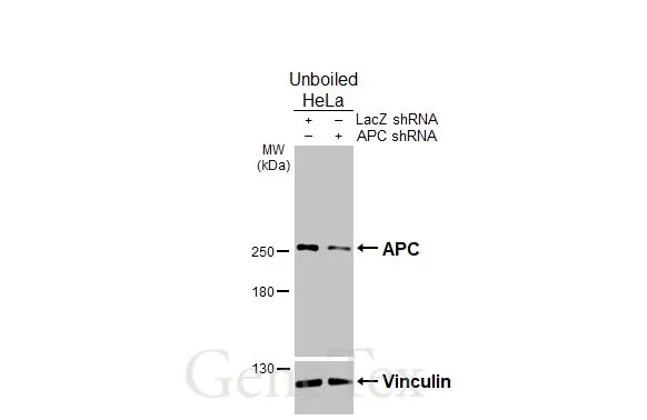 | Immunogen: | Carrier-protein conjugated synthetic peptide encompassing a sequence within the C-terminus region of human APC. The exact sequence is proprietary. |
