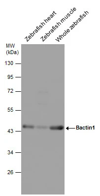 | Immunogen: | The immunogen used to generate this antibody corresponds to zebrafish Bactin1 |